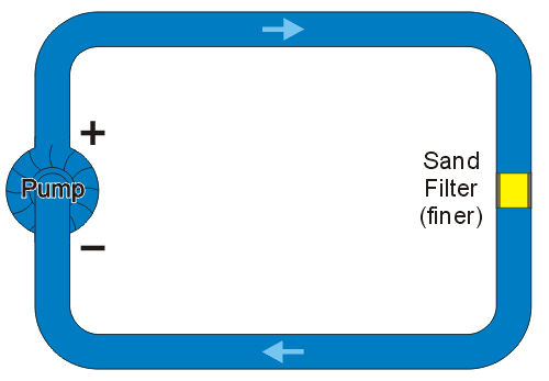 Consider a pump in a closed loop of water which contains a sand filter as shown in Figure 1.