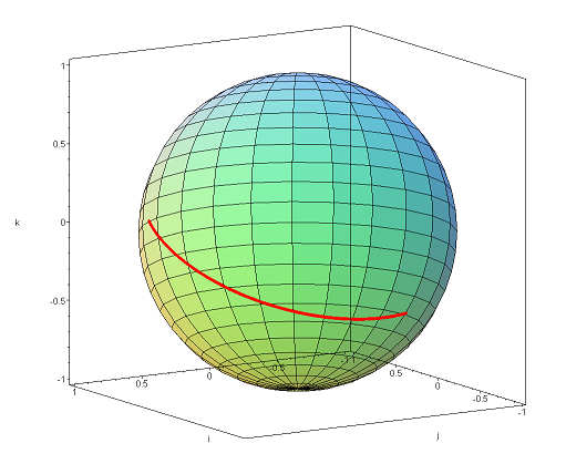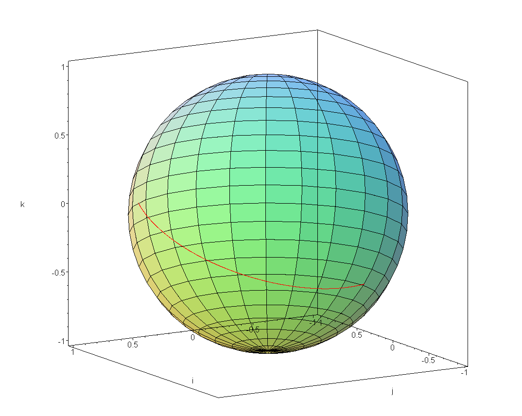 Figure 1. A spherical linear interpolation between q1 = 0.6i + 0.8j and q2 = −0.8i − 0.6k.