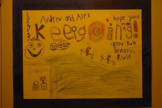The students at King George prepared an entire collection of posters to welcome Eric and Ben. They're all good, though this anonymous one is my favourite.