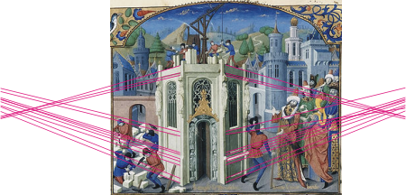 Failure to understand the underlying principles will result in a product which will appear to be defective and the errors will attract the attention of the audience. For example, consider the painting in Figure 3, the Reconstruction of the Temple of Jerusalem, where the lines on either side of the structure should meet at the same point but do not. This work, from the 13th century, was commissioned two hundred years before Filippo Brunelleschi introduced perspective to European art. Al-Hasan (a.k.a. Alhazen), an 11th century Mesopotamian mathematician and the father of modern optics, set the foundations for perspective; however this was a theoretical understanding not immediately translated into art.