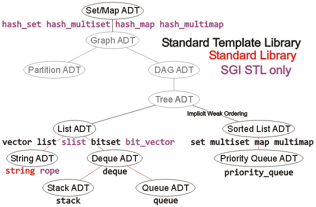 Figure 3. Implementations of the various ADTs in the C++ STL.