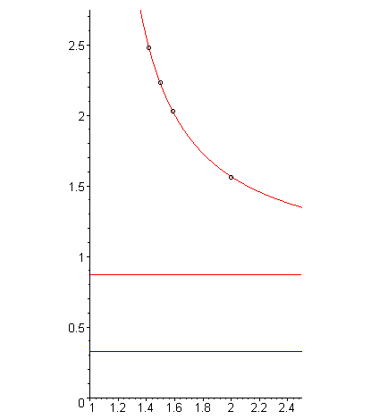 this data, it produced 0.91250 + 0.65306/(r − 1) with a very tight match. What is critical