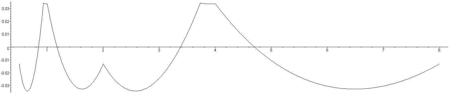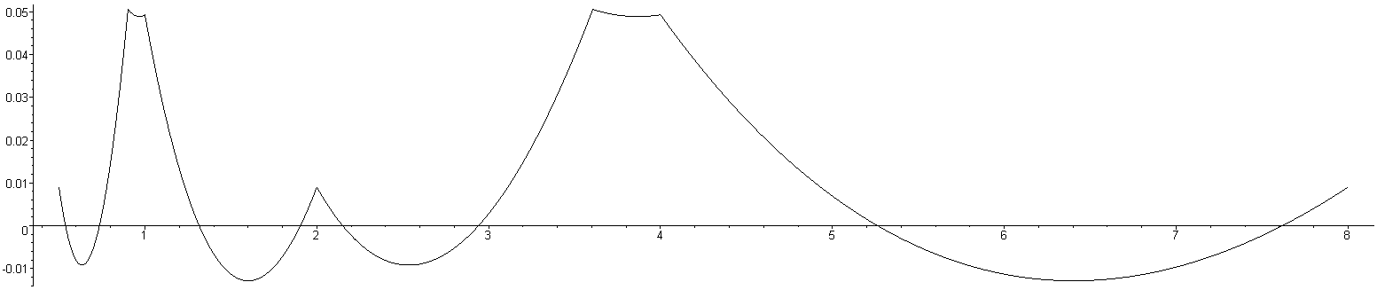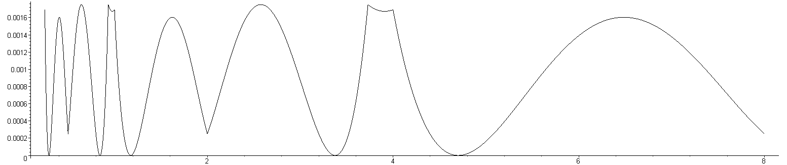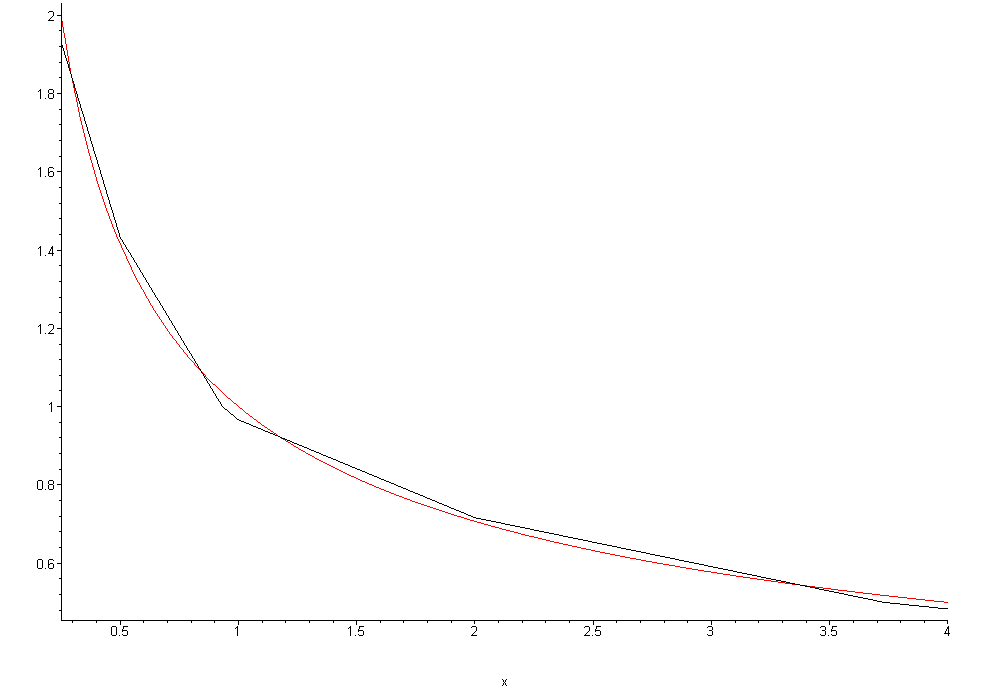 of 1/√x for values of x between 0.5 and 8 for this modification. As