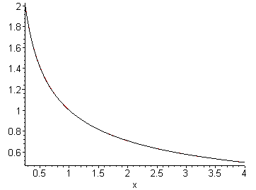 of 1/√x for values of x between 0.5 and 8. You