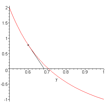 starts with the approximation 0.6 and, after one iteration of Newton's