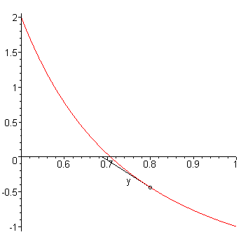 starts with the approximation 0.8 and, after one iteration of Newton's