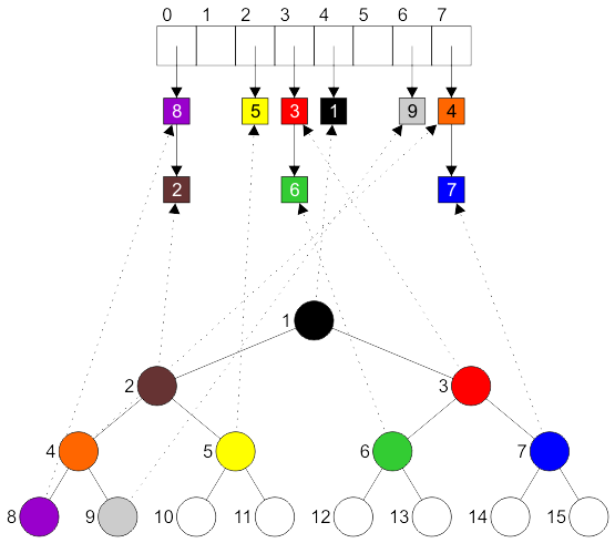 it is in the 1st location of the heap and the index 1 is stored in the node.