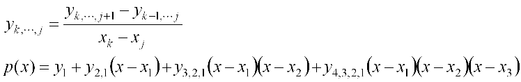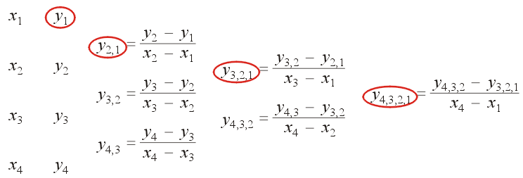 Figure 2. The table of divided differences for finding the Newton