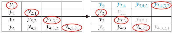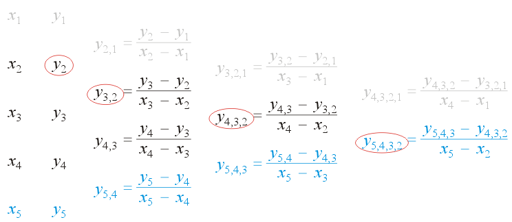 Figure 5. Updating the table of divided differences to calculate the