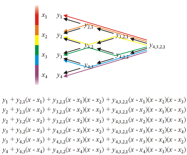 Figure 3. Calculating the Newton polynomial coefficients in a single