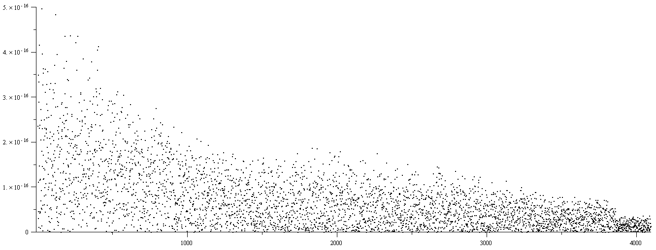 Figure 8. The absolute error of evaluating the optimal Newton polynomial for each point.