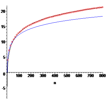 Figure 1. Average number of comparisons for successful searches in a binary search (blue) and the