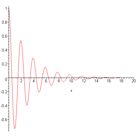 [> plot( cos(3.23*x)*exp(-0.323*x), x = 0..20 );