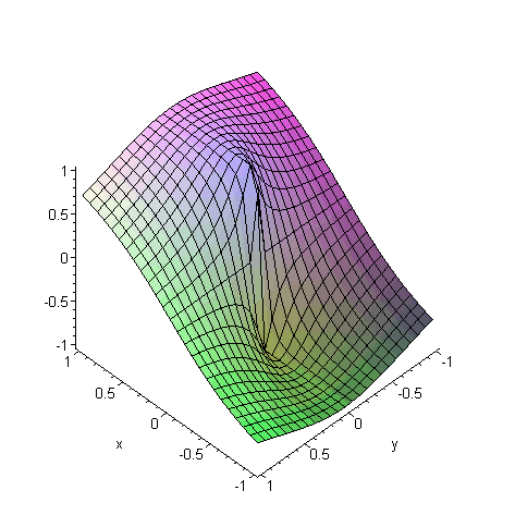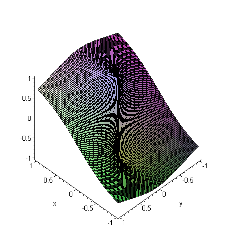 [> plot3d( x/sqrt(x^2 + y^2), x = -1..1, y = -1..1, axes = framed, grid = [101, 101] );