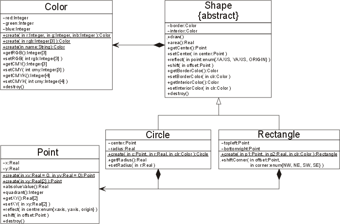 Figure 8. The association between the Color, Point, Shape, Circle, and Rectangle classes (click to enlarge).