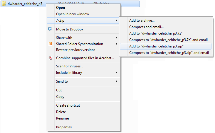 Figure 1. Using 7zip to create a zip file (shown in Windows).