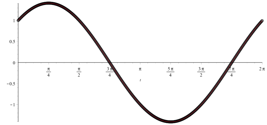 Figure 3. An approximation to the solution evaluated at $t = 0.01k$ for $k = 0, ..., 628$.